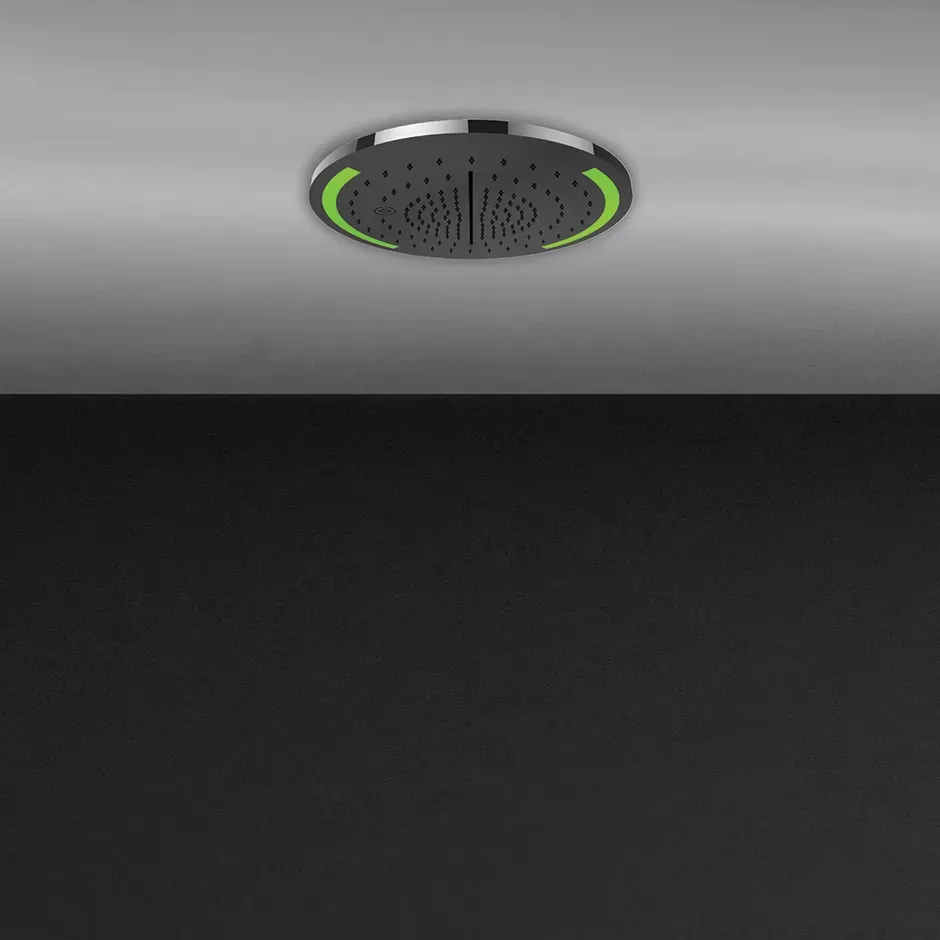 Встраиваемая в потолок душевая система Ø350. ТРОПИЧЕСКИЙ ЛИВЕНЬ.ВОДОПАД.РАСПЫЛЕНИЕ. ХРОМОТЕРАПИЯ. В комплекте пульт управления сдержателем. Приобретаются дополнительно блок питания 12В арт. RIR5402 и накладная панель