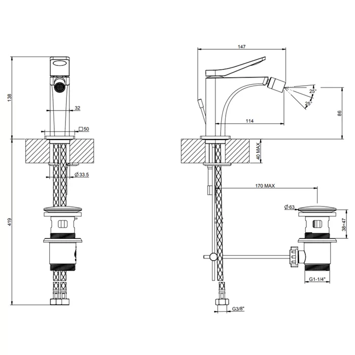 Смеситель для биде RILIEVO 031 Chrome GESSI