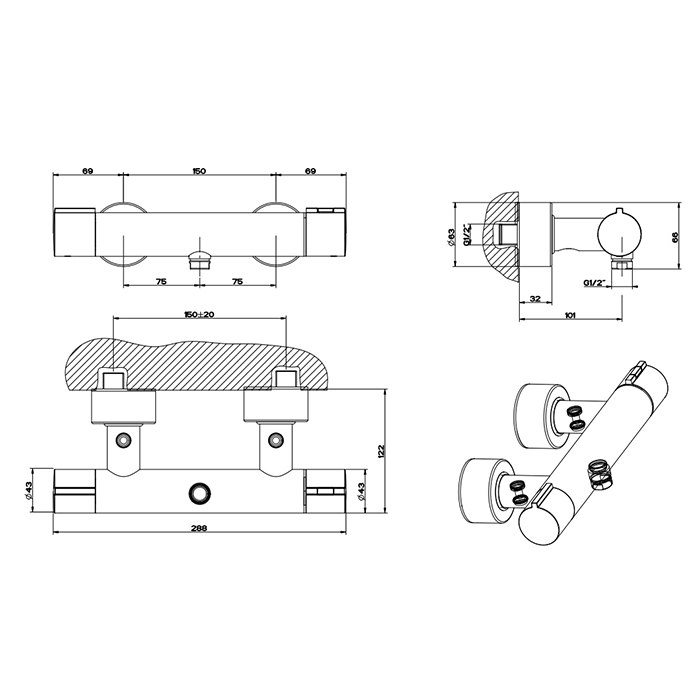 Смеситель для душа настенный термостатический EMPORIO VIA TORTONA 031 Chrome GESSI
