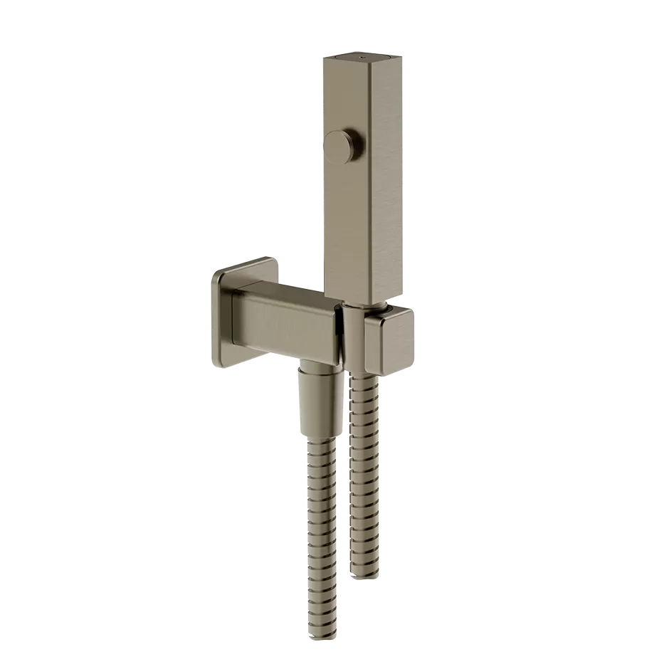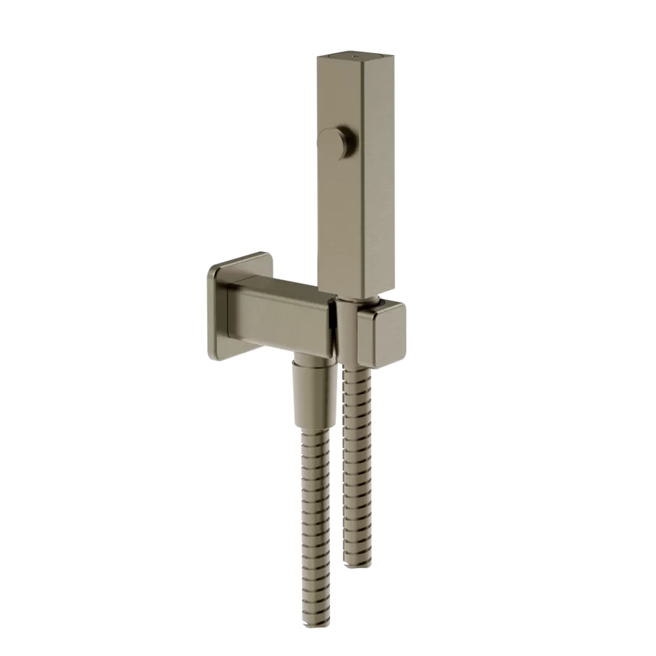 Гидроершик для унитаза со шлангом держателем и скрытым подключением без смесителя RETTANGOLO 149 Finox Brushed Nickel GESSI