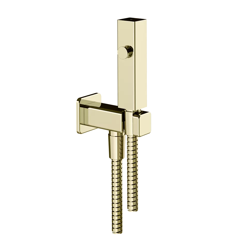 Гидроершик для унитаза со шлангом держателем и скрытым подключением без смесителя RETTANGOLO 710 Brass PVD GESSI