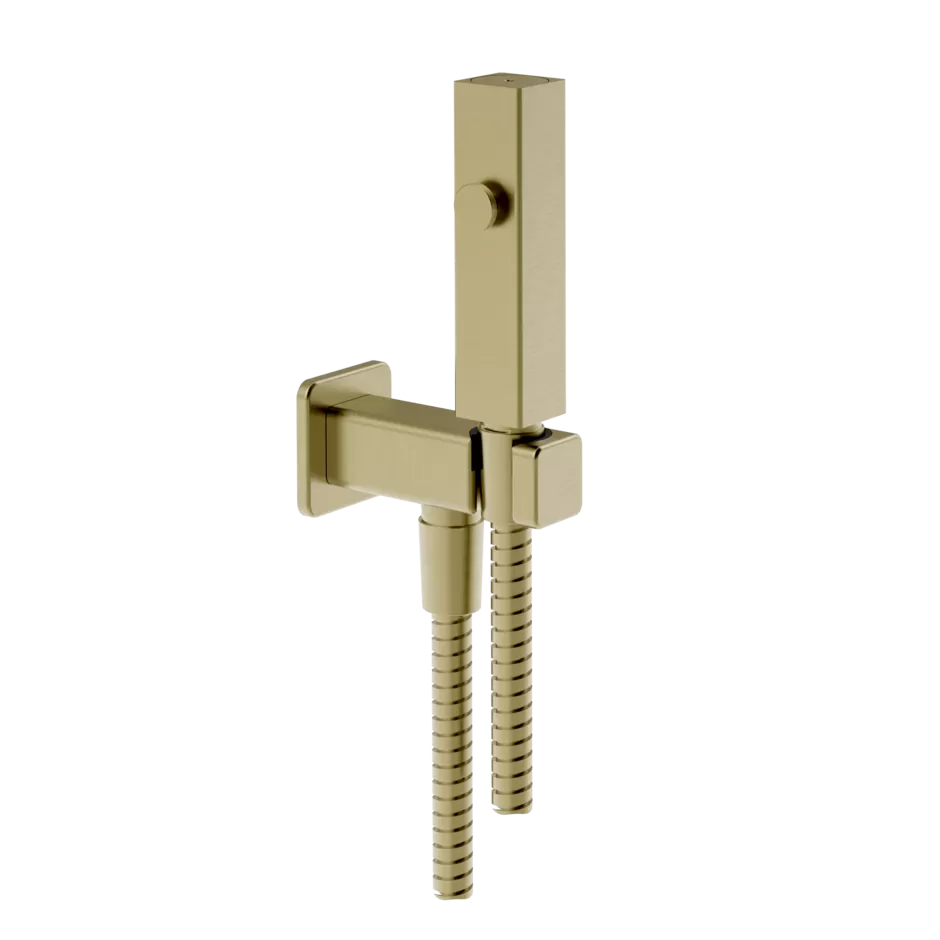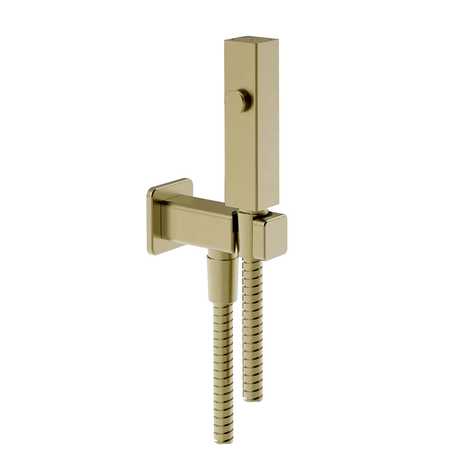Гидроершик для унитаза со шлангом держателем и скрытым подключением без смесителя RETTANGOLO 727 Brushed Brass PVD GESSI