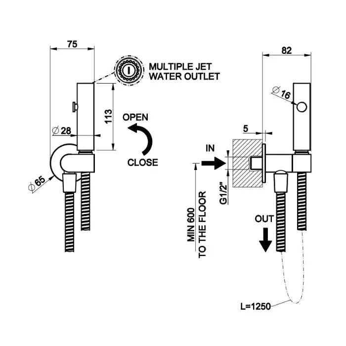 Гигиенический душ с запорным клапаном со шлангом держателем и скрытым подключением без смесителя 149 Finox Brushed Nickel GESSI