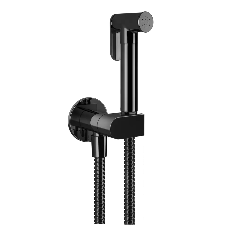 Гигиенический душ с запорным клапаном со шлангом держателем и скрытым подключением без смесителя 706 Black Metal PVD GESSI