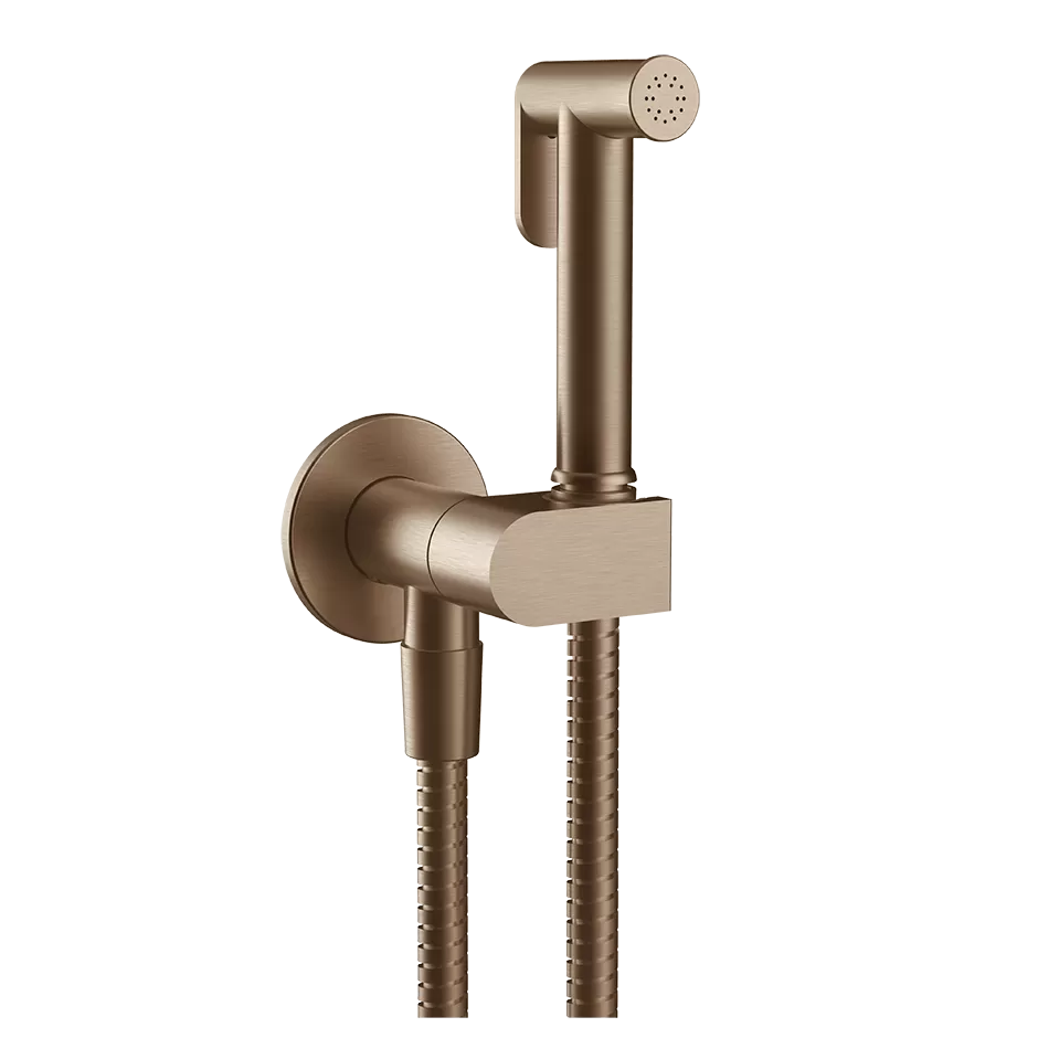 Гигиенический душ с запорным клапаном со шлангом держателем и скрытым подключением без смесителя 708 Copper Brushed PVD GESSI