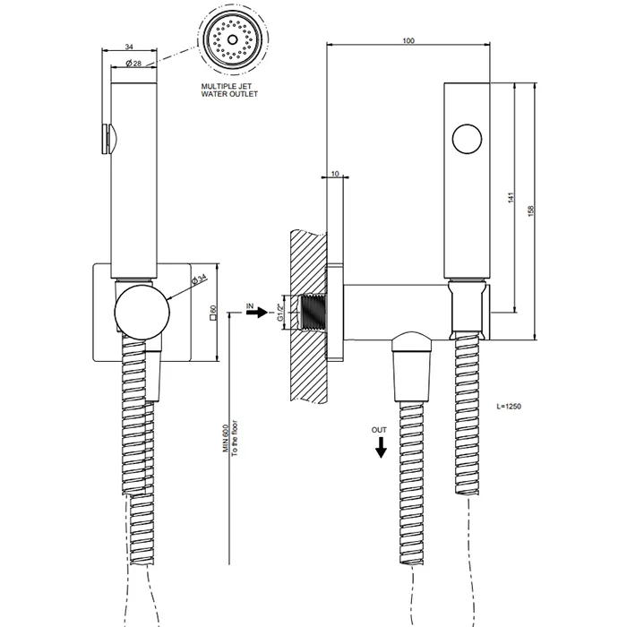Гигиенический душ со шлангом держателем и скрытым подключением без смесителя 299 Black XL GESSI
