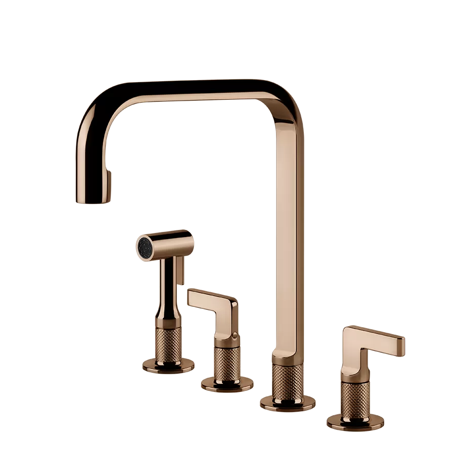 Смеситель для кухни на 4 отверстия с шлангом и лейкой вытяжной излив INCISO 030 Copper PVD GESSI
