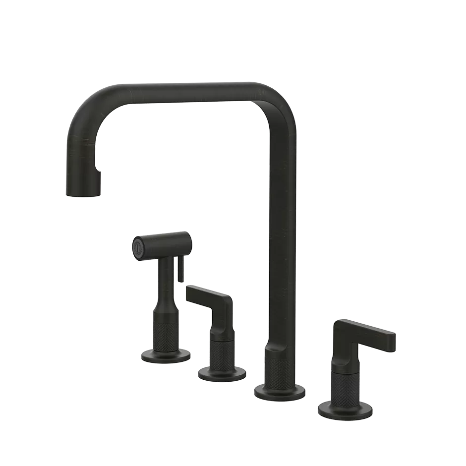 Смеситель для кухни на 4 отверстия с шлангом и лейкой вытяжной излив INCISO 187 Aged Bronze GESSI