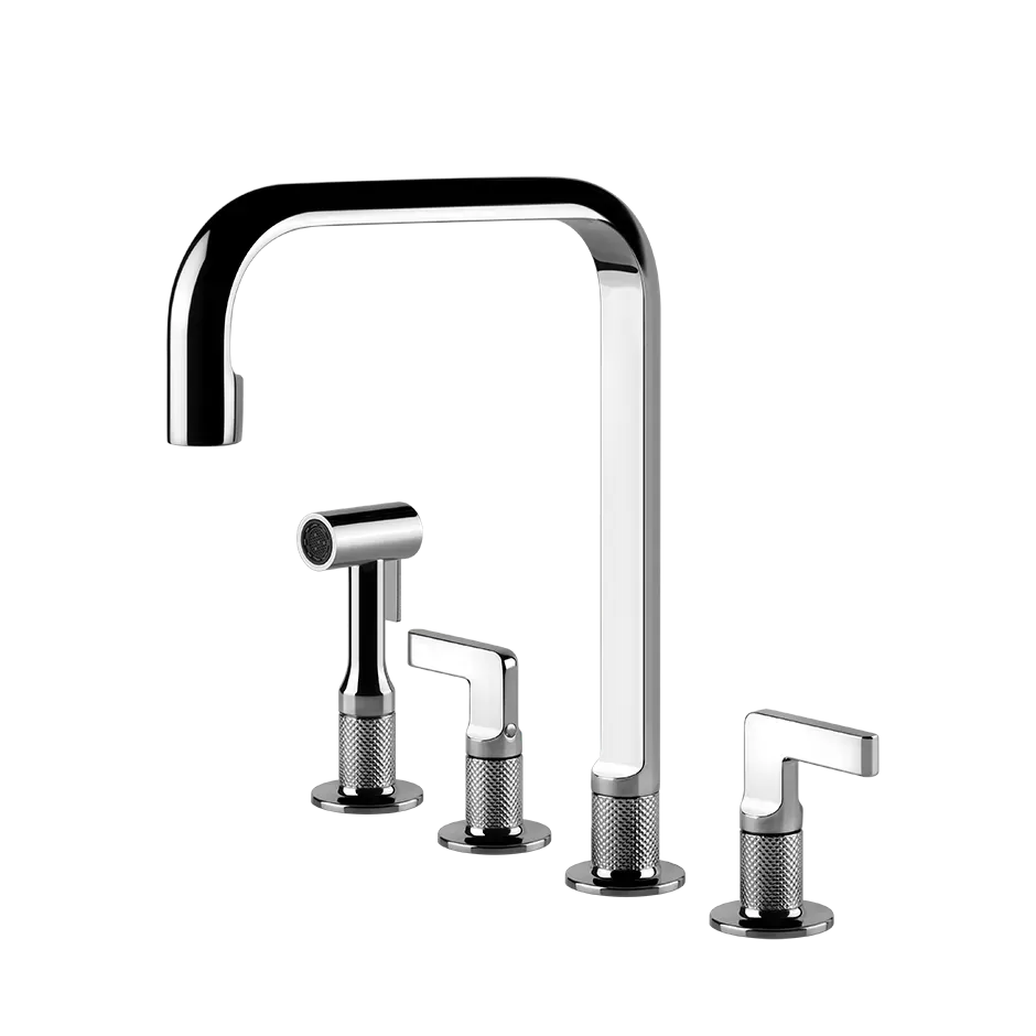 Смеситель для кухни на 4 отверстия с шлангом и лейкой вытяжной излив INCISO 707 Black Metal Brushed PVD GESSI