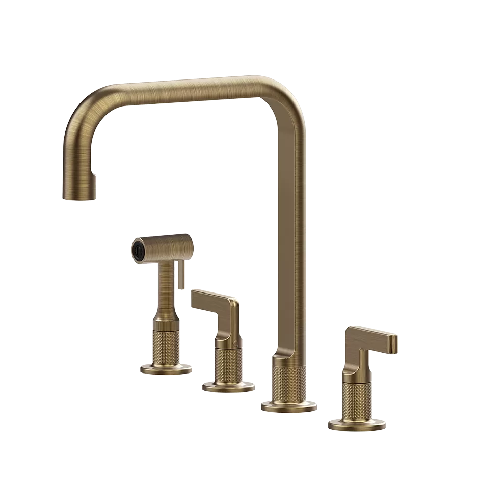 Смеситель для кухни на 4 отверстия с шлангом и лейкой вытяжной излив INCISO 713 Antique Brass GESSI