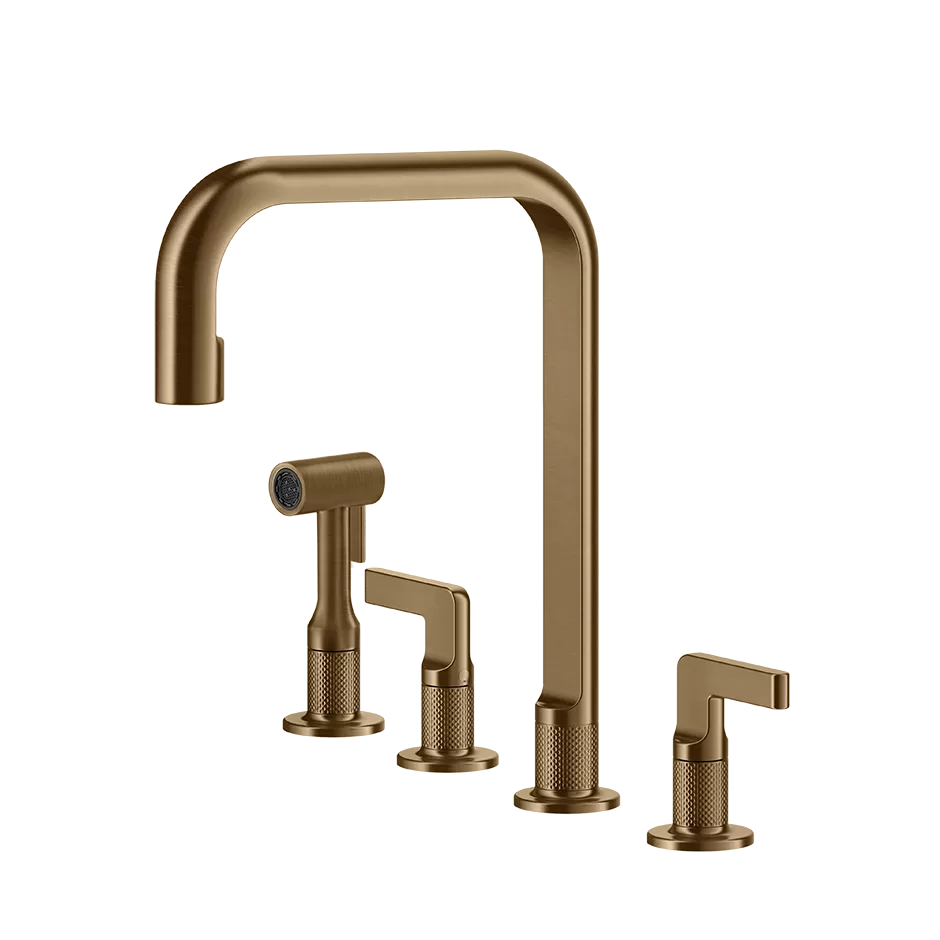 Смеситель для кухни на 4 отверстия с шлангом и лейкой вытяжной излив INCISO 726 Warm Bronze Br. PVD GESSI
