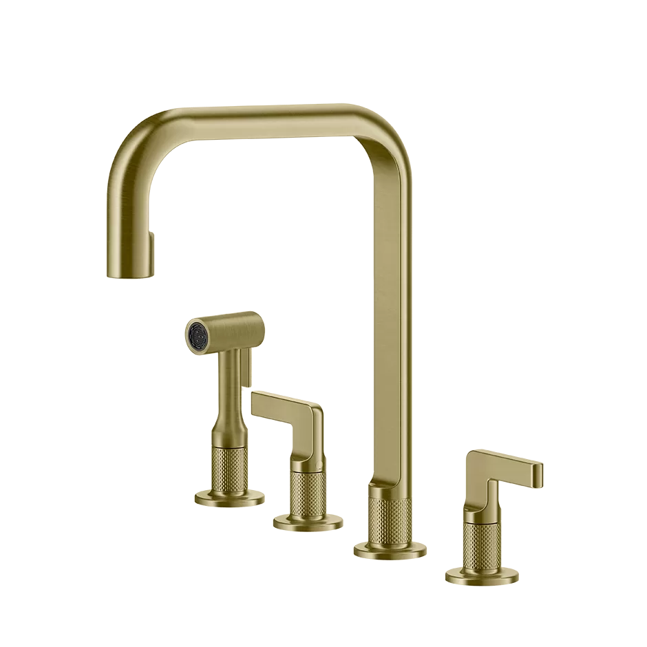 Смеситель для кухни на 4 отверстия с шлангом и лейкой вытяжной излив INCISO 727 Brushed Brass PVD GESSI