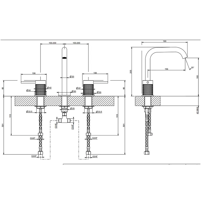 Смеситель для раковины на 3 отверстия CESELLO 707 Black Metal Brushed PVD GESSI