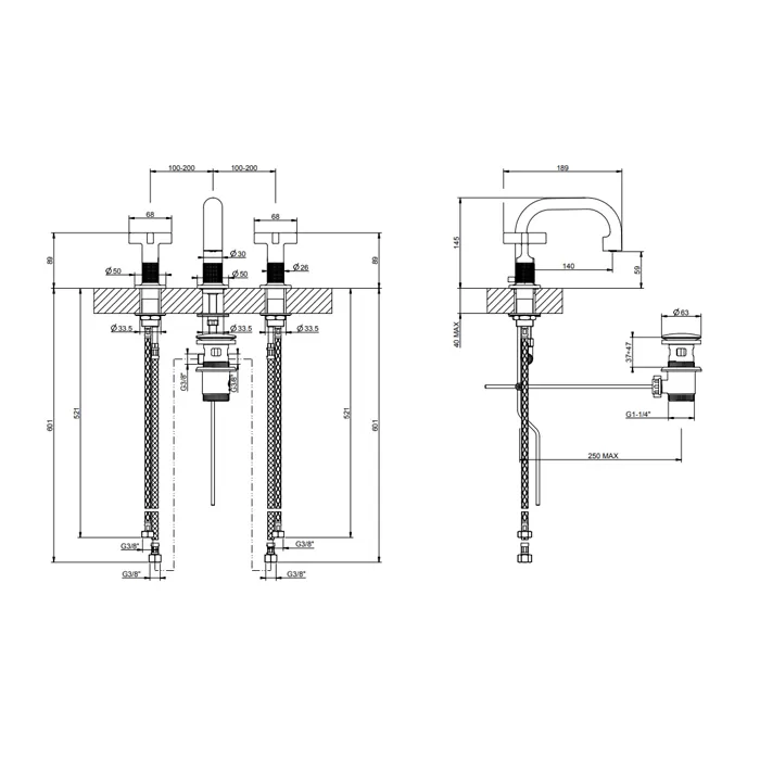 Смеситель для раковины на 3 отверстия INCISO + 299 Black XL GESSI