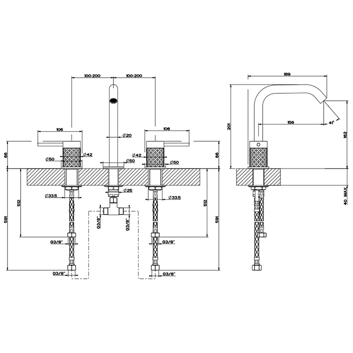 Смеситель для раковины на 3 отверстия INTRECCIO 707 Black Metal Brushed PVD GESSI