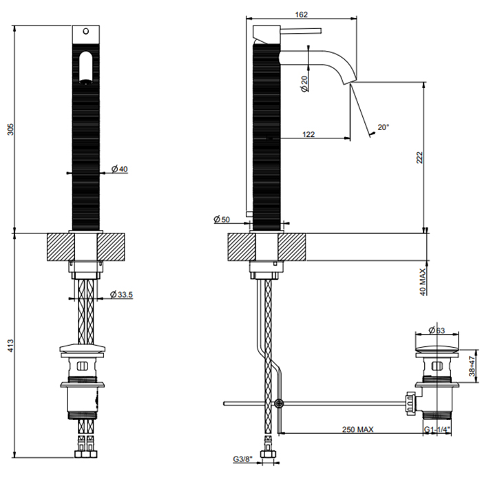 Смеситель для раковины высокий TRAME 707 Black Metal Brushed PVD GESSI