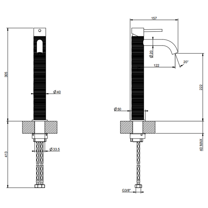 Смеситель для раковины высокий TRAME 707 Black Metal Brushed PVD GESSI