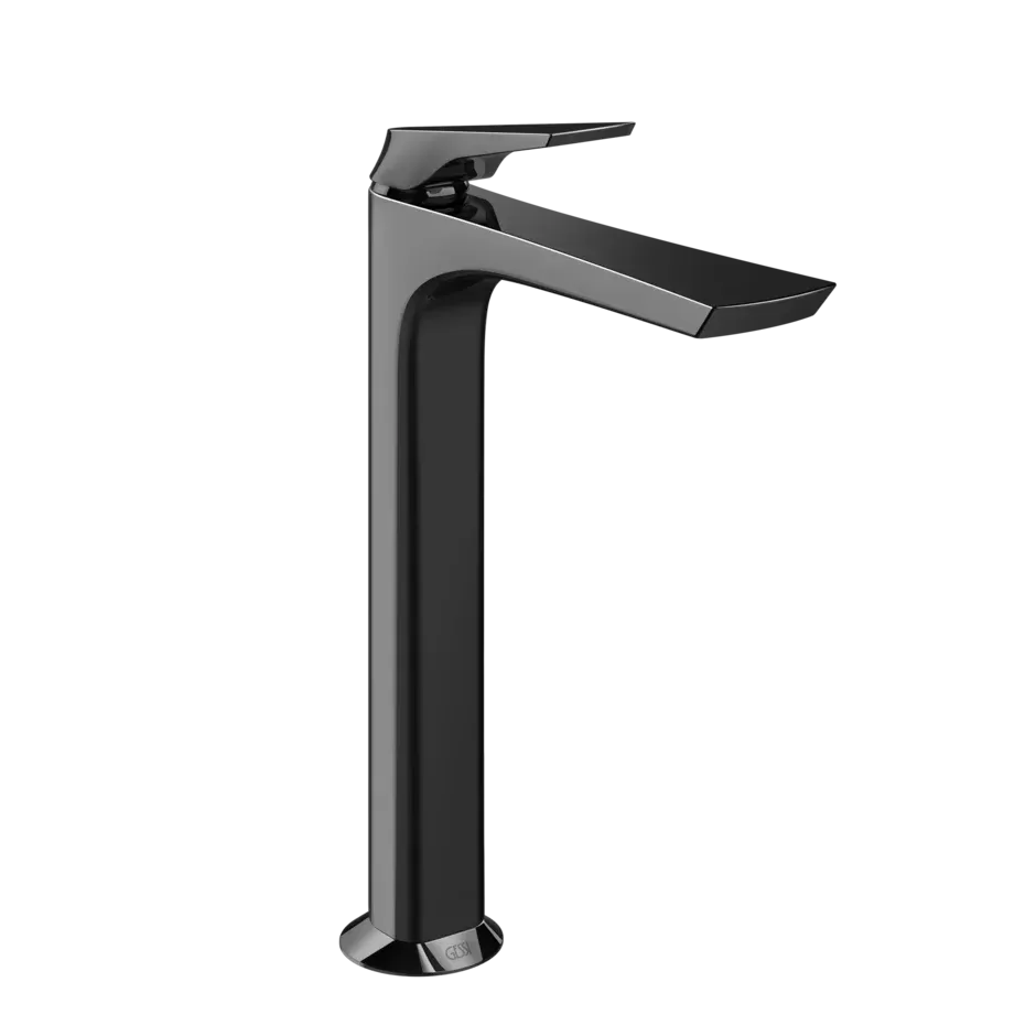 Смеситель для раковины высокой версии со сливом Stop&Go и гибкими соединительными элементами.
