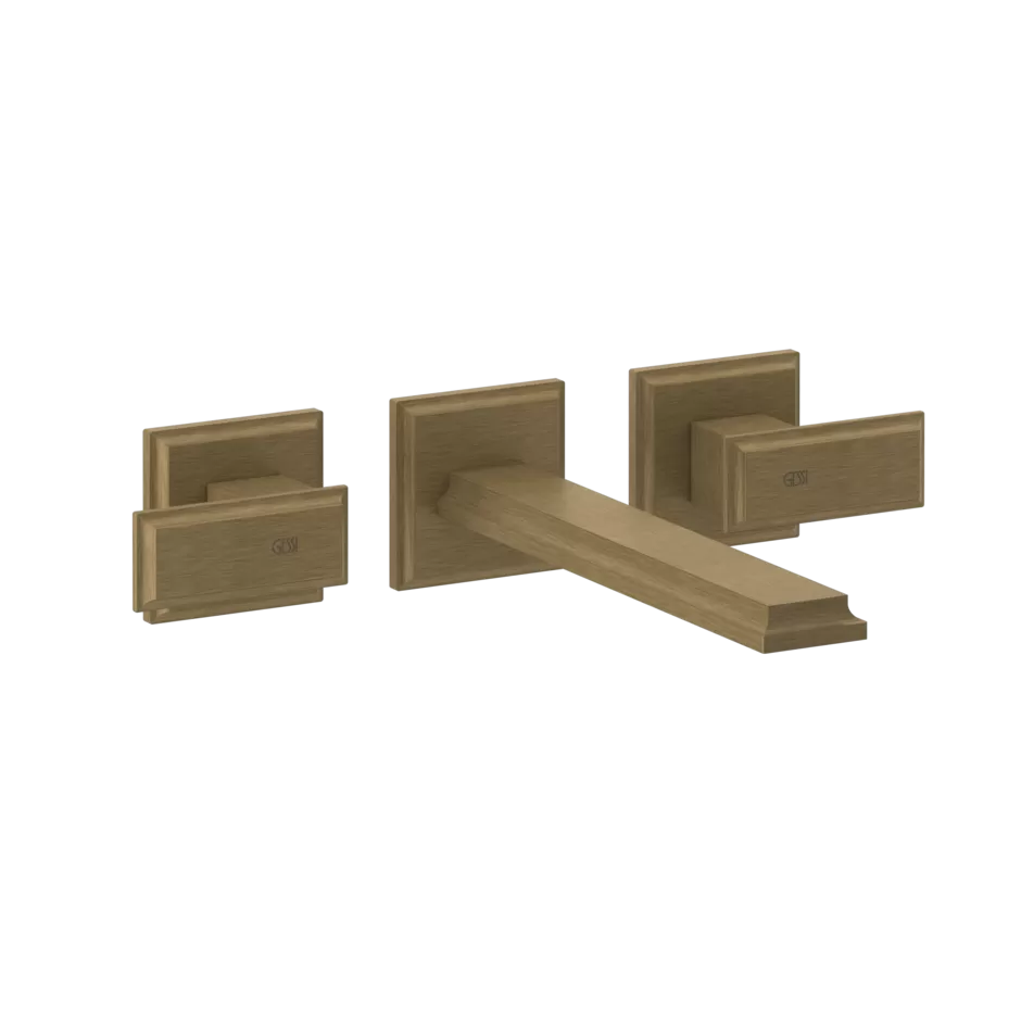 Смеситель для раковины настенный скрытого монтажа на 3 отверстия с длинным изливом ELEGANZA 713 Antique Brass GESSI