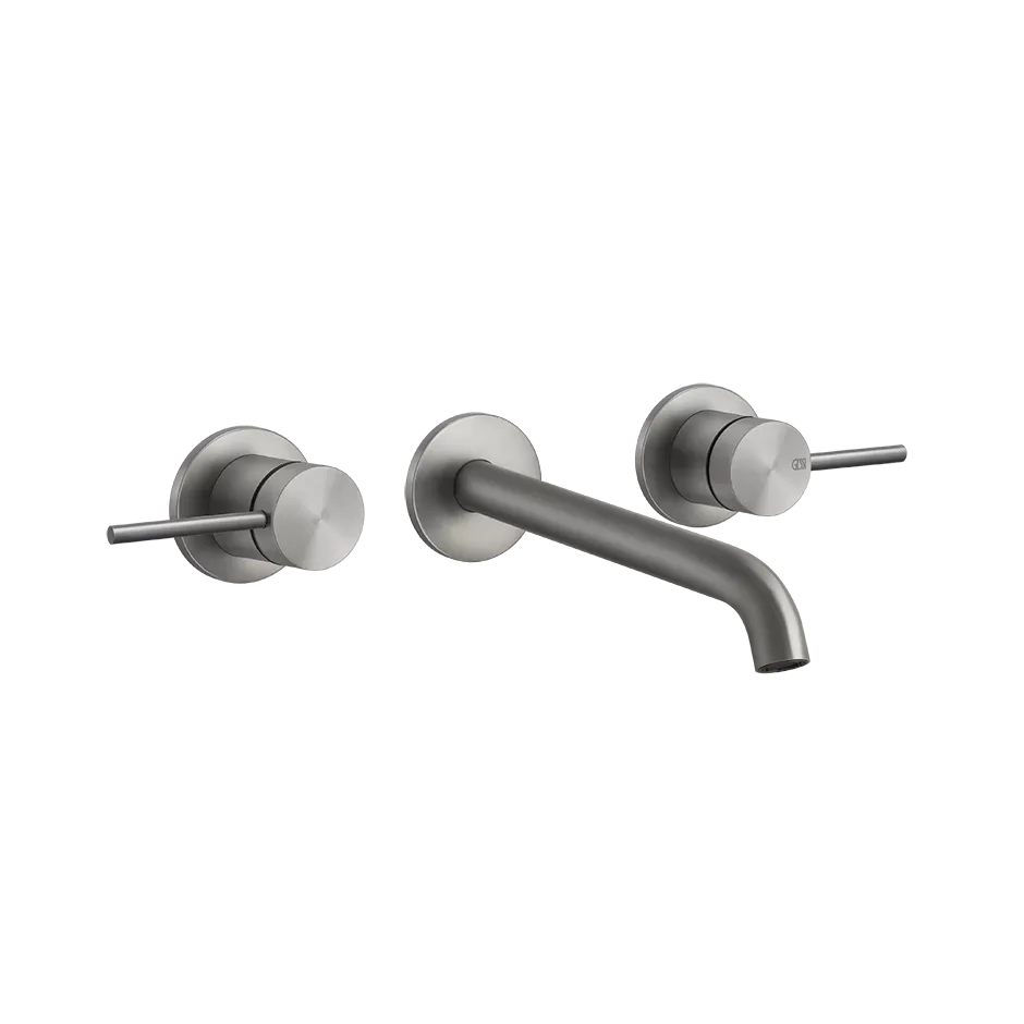 Смеситель для раковины настенный скрытого монтажа на 3 отверстия с длинным изливом FLESSA 239 Steel Brushed GESSI
