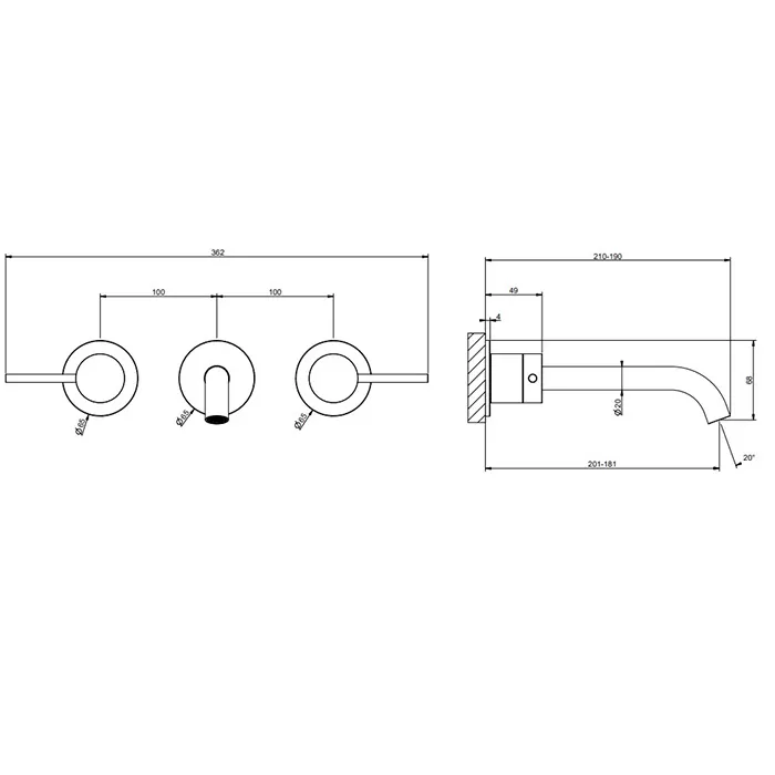 Смеситель для раковины настенный скрытого монтажа на 3 отверстия с длинным изливом FLESSA 299 Black XL GESSI