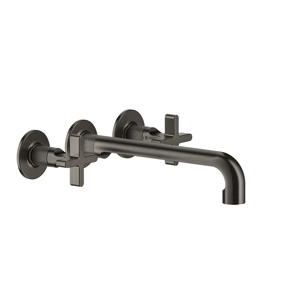 Смеситель для раковины настенный скрытого монтажа на 3 отверстия с длинным изливом INCISO + 727 Brushed Brass PVD GESSI