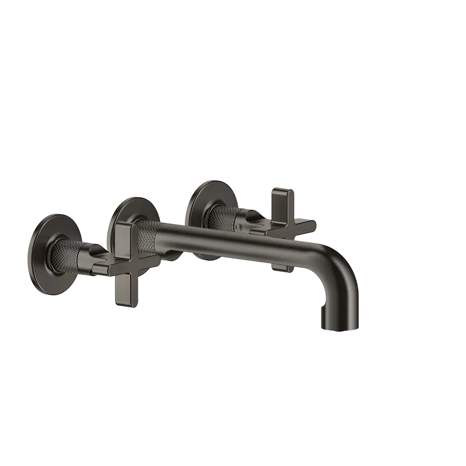 Смеситель для раковины настенный скрытого монтажа на 3 отверстия с средним изливом INCISO + 707 Black Metal Brushed PVD GESSI