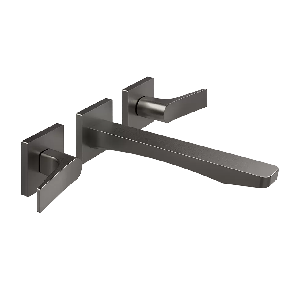 Смеситель для раковины настенный скрытого монтажа на 3 отверстия с средним изливом RILIEVO 707 Black Metal Brushed PVD GESSI