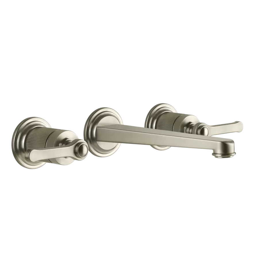 Смеситель для раковины настенный скрытого монтажа на 3 отверстия с средним изливом VENTI20 149 Finox Brushed Nickel GESSI