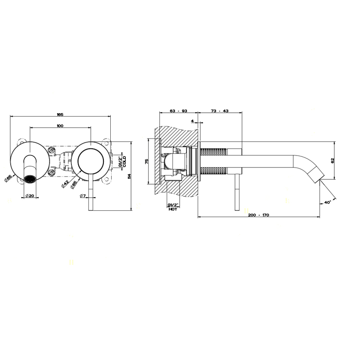 Смеситель для раковины настенный скрытого монтажа с длинным изливом CESELLO 239 Steel Brushed GESSI