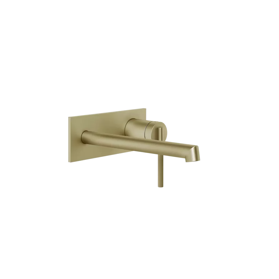 Смеситель для раковины настенный скрытого монтажа с длинным изливом INGRANAGGIO 727 Brushed Brass PVD GESSI