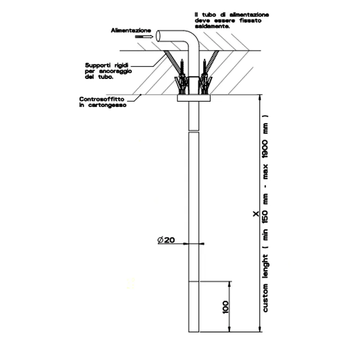 Потолочный излив FLESSA, длина изготавливается под заказ