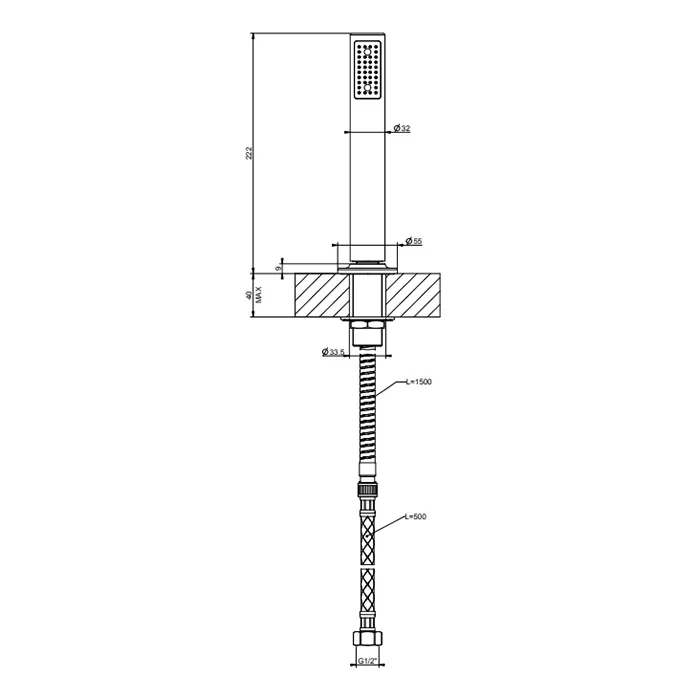 Душевой набор на борт ванны с выходом для шланга INCISO 707 Black Metal Brushed PVD GESSI