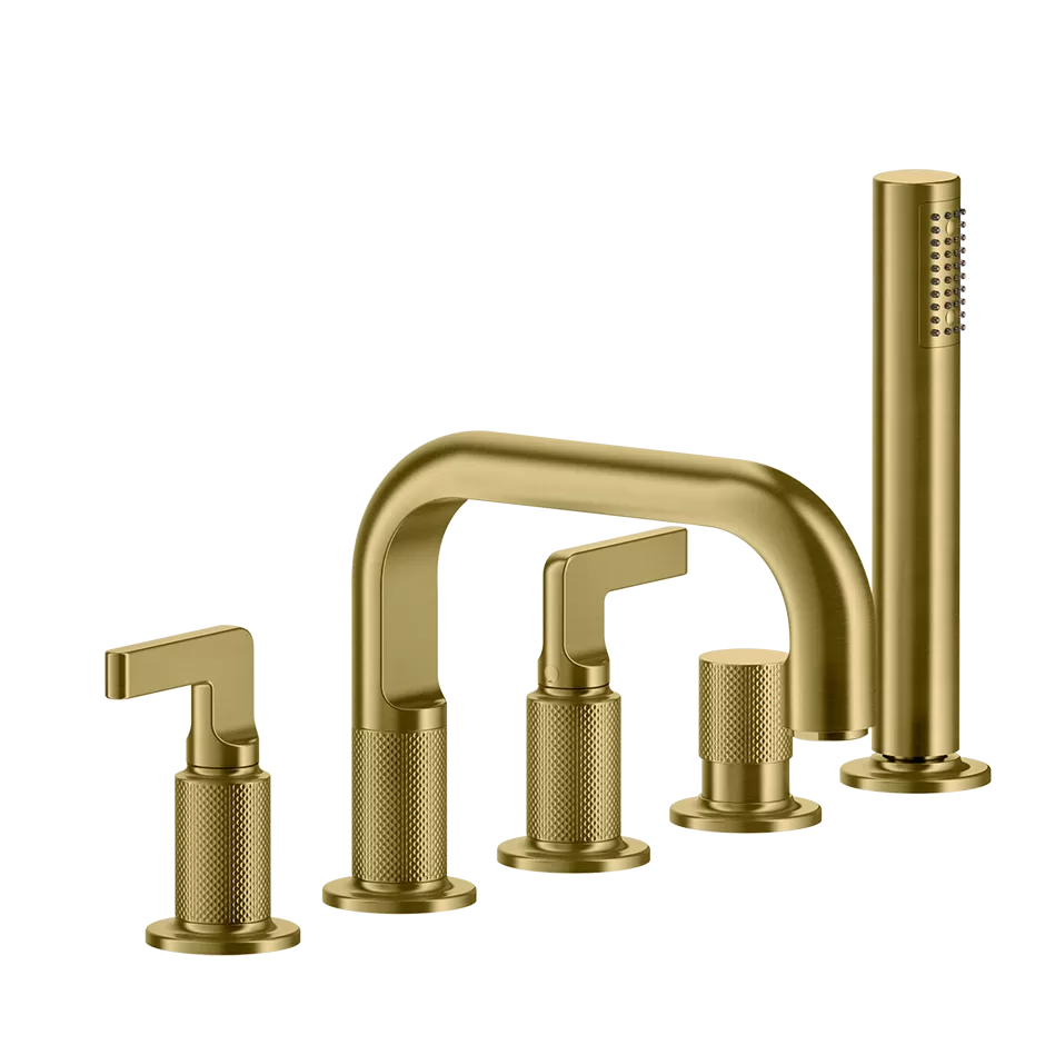 Смеситель для ванны на пять отверстий с переключателем, изливом для наполнения ванны и гибким шлангом длиной 1,50 м, ручной душ с защитой от известняка