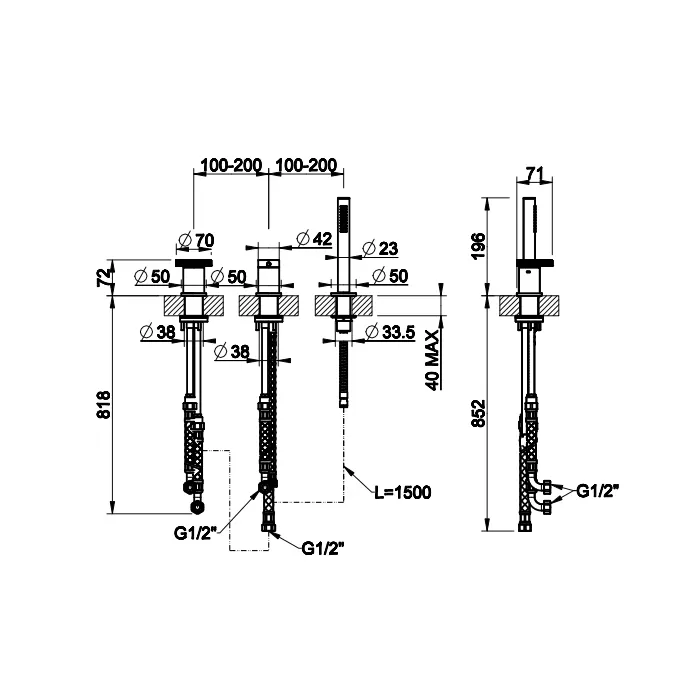 Смеситель на борт ванны 3 отверстия наполнение через слив-перелив с душевым набором ANELLO 031 Chrome GESSI