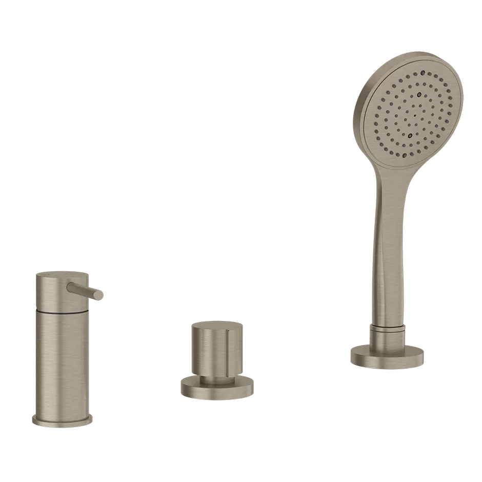Смеситель на борт ванны 3 отверстия наполнение через слив-перелив с душевым набором EMPORIO VIA TORTONA 149 Finox Brushed Nickel GESSI