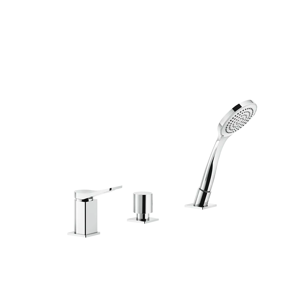 Смеситель на борт ванны 3 отверстия наполнение через слив-перелив с душевым набором RILIEVO 710 Brass PVD GESSI