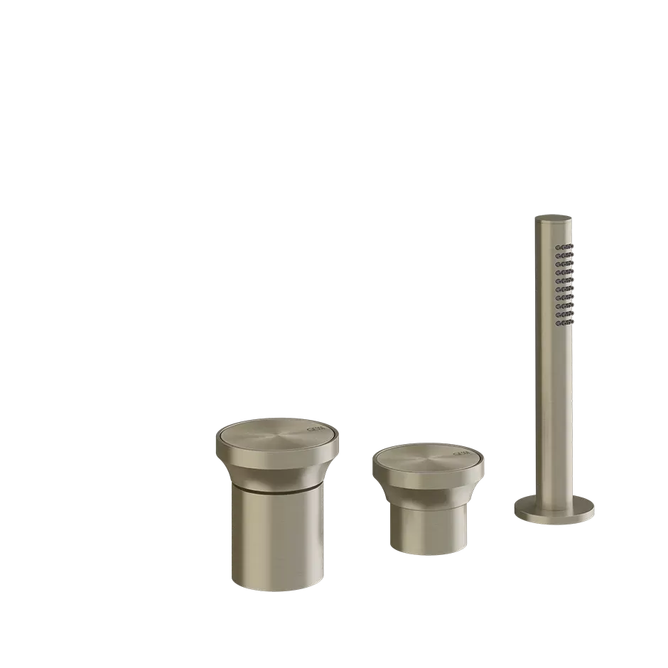 Смеситель на борт ванны 3 отверстия с изливом и душевым набором ORIGINI вставка в комплекте можно дополнительно комплектовать вставками арт.66600 или арт.66602 707 Black Metal Brushed PVD GESSI