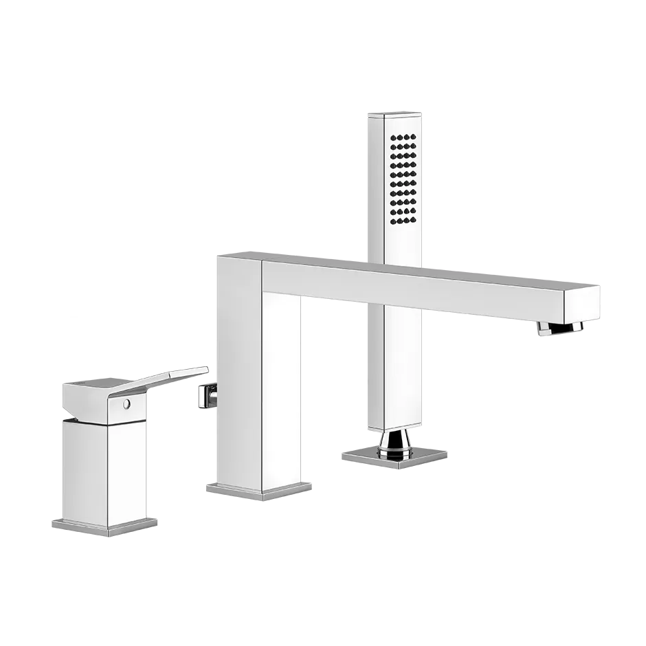 Смеситель на борт ванны 3 отверстия с изливом и душевым набором RETTANGOLO K 727 Brushed Brass PVD GESSI