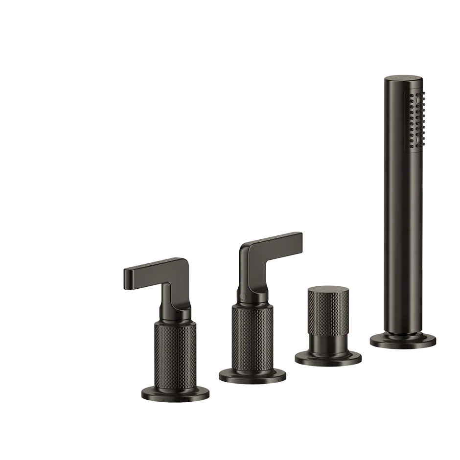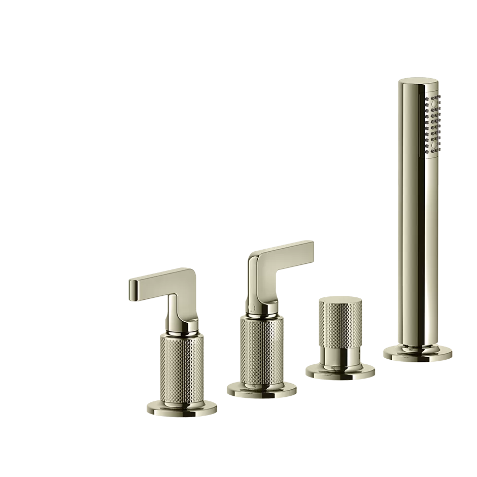 Смеситель на борт ванны 4 отверстия наполнение через слив-перелив с душевым набором INCISO 720 Nickel PVD GESSI