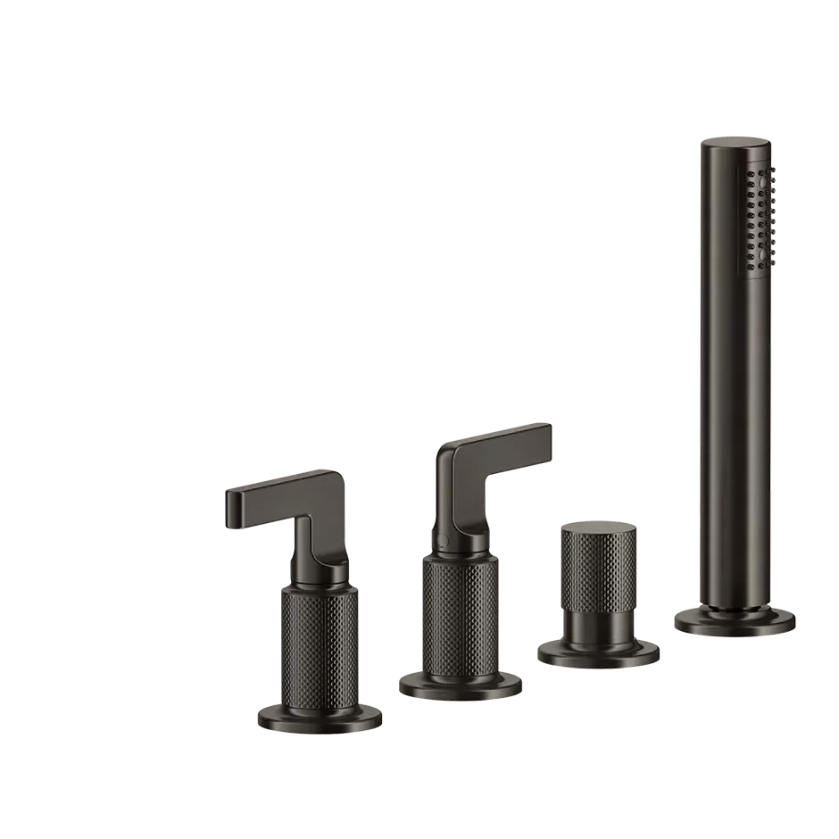 Смеситель на борт ванны 4 отверстия наполнение через слив-перелив с душевым набором INCISO 735 Warm Bronze PVD GESSI