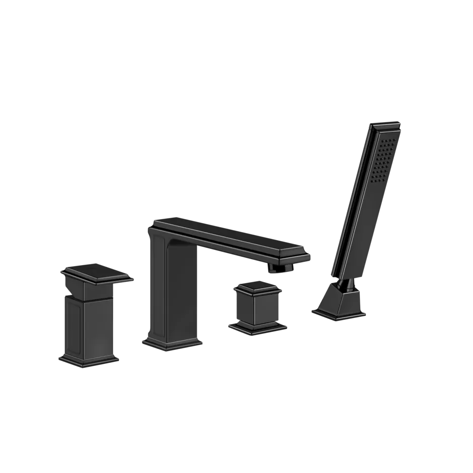 Смеситель на борт ванны 4 отверстия с изливом и душевым набором ELEGANZA 706 Black Metal PVD GESSI