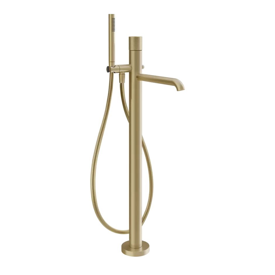 Смеситель для ванны напольный с душевым набором без скрытой части HABITO CESELLO 727 Brushed Brass PVD GESSI