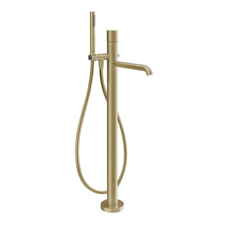 Смеситель для ванны напольный с душевым набором без скрытой части HABITO DIAMANTATO 727 Brushed Brass PVD GESSI