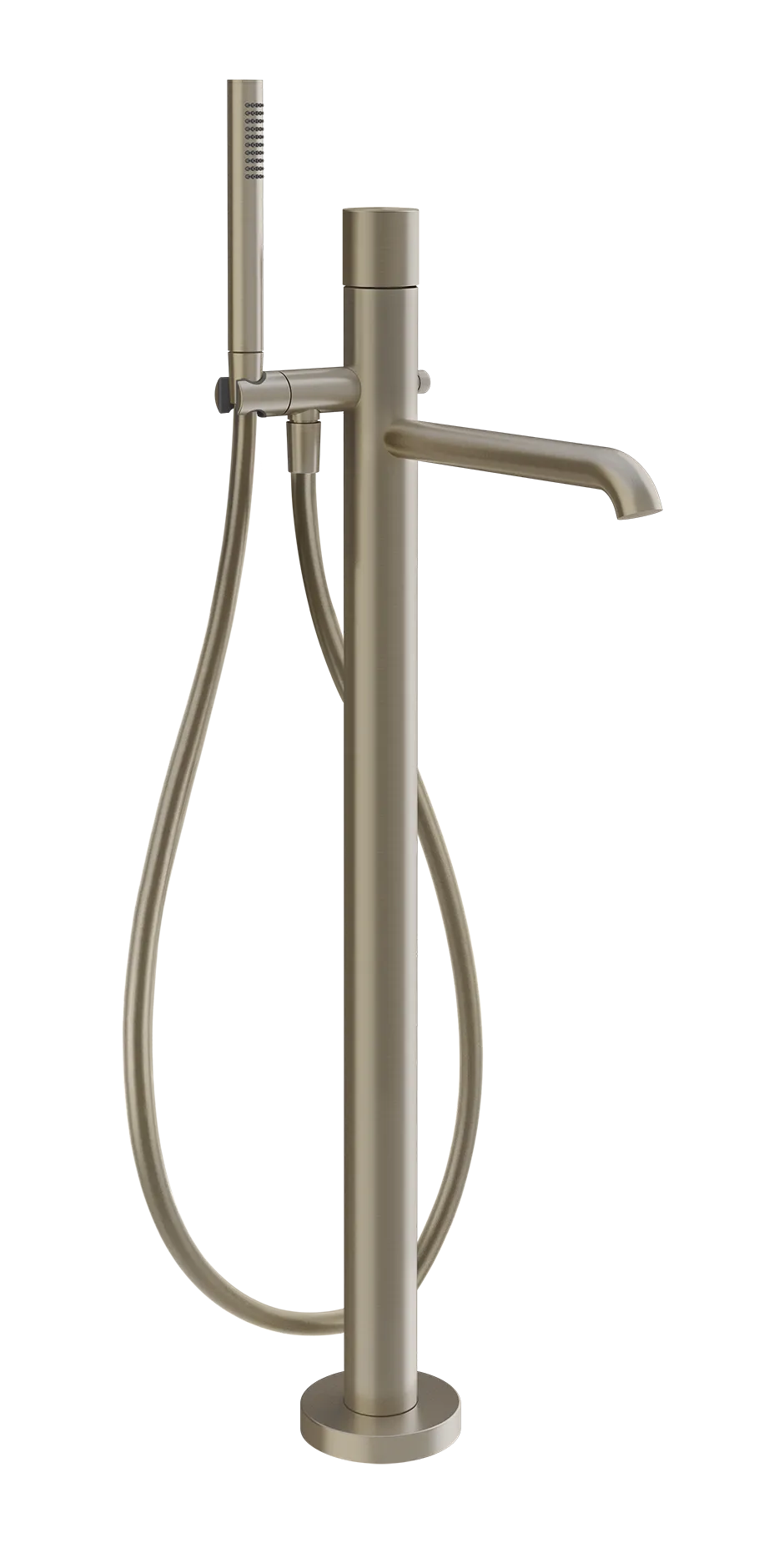 Смеситель для ванны напольный с душевым набором без скрытой части HABITO UNITO 149 Finox Brushed Nickel GESSI