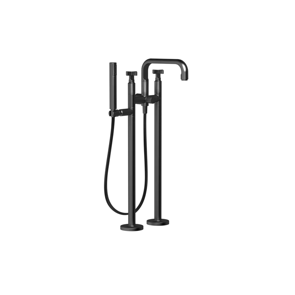 Смеситель для ванны напольный с душевым набором без скрытой части INCISO + 707 Black Metal Brushed PVD GESSI