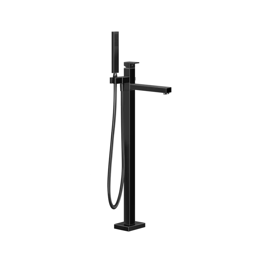 Смеситель для ванны напольный с душевым набором без скрытой части RETTANGOLO 706 Black Metal PVD GESSI