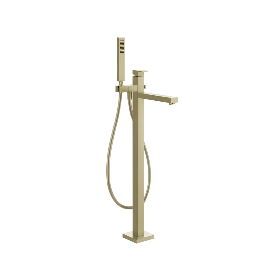 Смеситель для ванны напольный с душевым набором без скрытой части RETTANGOLO 727 Brushed Brass PVD GESSI