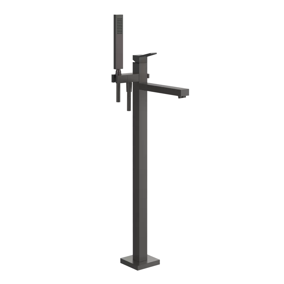 Смеситель для ванны напольный с душевым набором без скрытой части RETTANGOLO K 707 Black Metal Brushed PVD GESSI
