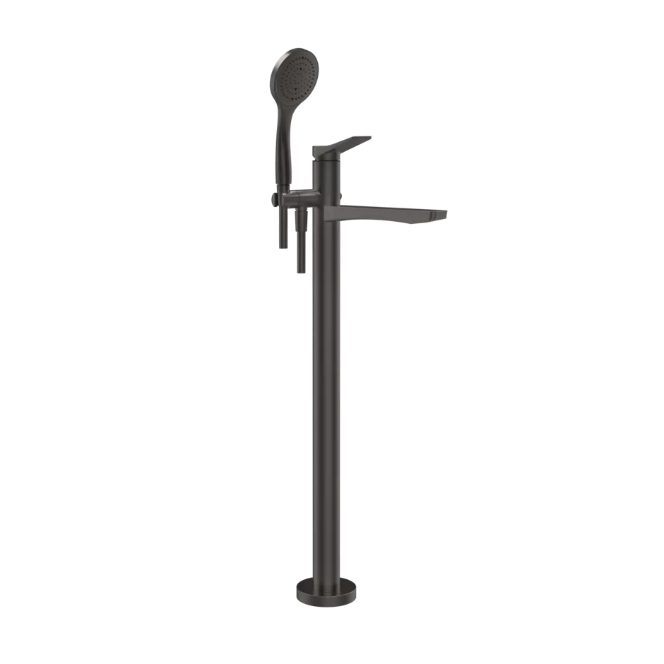 Смеситель для ванны напольный с душевым набором без скрытой части RILIEVO 707 Black Metal Brushed PVD GESSI